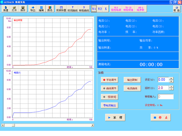 - 所有儀器通過RS485總線與電腦連接,實現(xiàn)對電機的自動加載以及對數(shù)據(jù)的集中采集。實時顯示各參數(shù)與時間之間的關(guān)系曲線,以記錄整過測試過程。